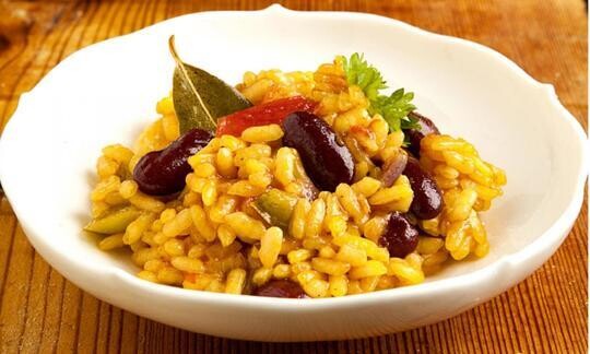 El «empedrado murciano» es un plato tradicional español. El pimentón y el azafrán le dan un toque muy especial a este arroz.